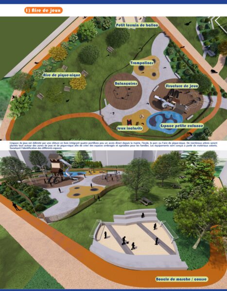Pensé comme un véritable lieu de vie, il sera structuré en plusieurs zones complémentaires, chacune pensée pour répondre à des usages précis : détente, loisirs, scolaires, promenade, rencontres… Il aura aussi comme rôles essentiels de :